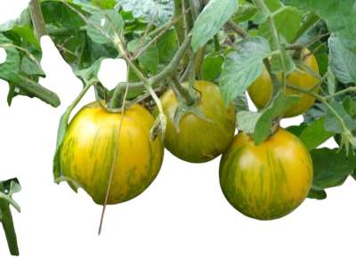 Variété de mi-saison, à croissance indéterminée, produisant des fruits verts zébrés de jaune, de 80 à 120g. Sa chair à la fois juteuse, acidulée et fondante la rend idéale pour les salades ou les confitures