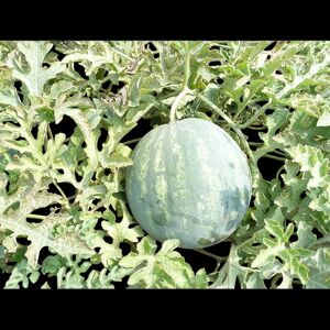Variété ancienne, précoce, productive et résistante à la sécheresse. Petite pastèque à peau foncée. Fruits ronds d'env. 20-30 cm et 3 kg. Chair rouge, juteuse, sucrée et rafraîchissante. Contient peu de graines.