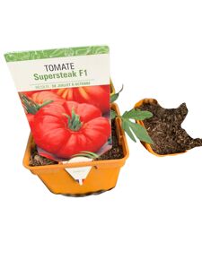 La Tomate Supersteak produit des fruits énormes. En effet, on observe une moyenne comprise entre 300 et 800 g. Ce sont de beaux fruits rouge rubis, aplatis au sommet et côtelés aux épaules. La chair - de type beefsteak bien sûr - très savoureuse et sa forme font de cette Tomate Supersteak la candidate parfaite pour le titre de reine des farcis.