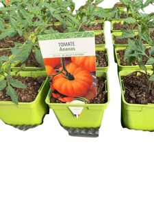 La Tomate Ananas est une variété ancienne originaire des USA et qui, lorsqu'elle est tranchée, ressemble à une tranche d'ananas. Sa robe et la chair sont panachées d'orange et de jaune. C'est une tomate de type cœur de bœuf au gabarit intéressant : les fruits atteignent 200 à 400 g en moyenne mais certains rapportent en avoir vu de plus de 1 kg. Sa chair est ferme, renfermant peu de graine et de jus mais sa saveur est très fruitée et délicatement sucrée. La Tomate Ananas est un régal visuel et gustatif. On l'utilisera pour colorer les salades mais aussi pour les farcis pour une véritable explosion en bouche. En tant que variété orange, elle contient beaucoup de lycopène. Elle se tient mieux dans les régions bien ensoleillées. La Tomate Ananas est une variété tardive
