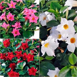 Ces grimpantes de petit développement sont très florifères et polyvalentes. Leurs belles fleurs en étoile sont rouge écarlate, blanc pur à centre jaune-orangé ou rose vif veiné de plus sombre, selon les plantes. Ces dipladenias de croissance rapide, résistants à la chaleur et peu gourmands en eau sont précieux pour les terrasses et balcons inondés de soleil.